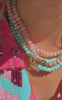 The Encirkled Rosewater Pink Opal Necklace features smooth pink Peruvian opals hand-knotted on rose-colored silk. This strand can be worn with the 12mm solid 14k yellow gold bolt clasp in the back or front styled with charms!