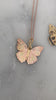 The White Buckeye butterfly hinged articulating necklace with multi inlay execution. This is a work of art. Each butterfly is inspired by the various species of butterflies around the world, using an ancient inlay process to create the illusion that the details on the butterflies are painted to represent their unique patterns in the wild.