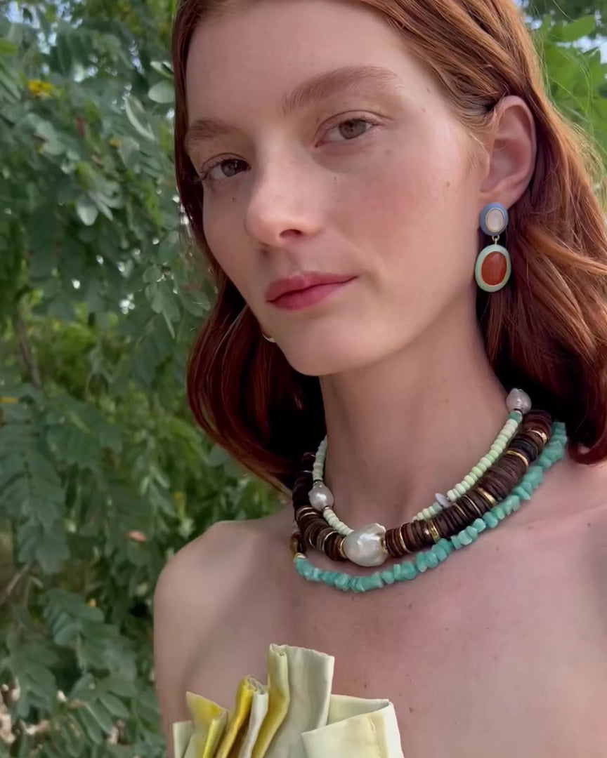 - Gold-plated brass, recycled bone heishi bead